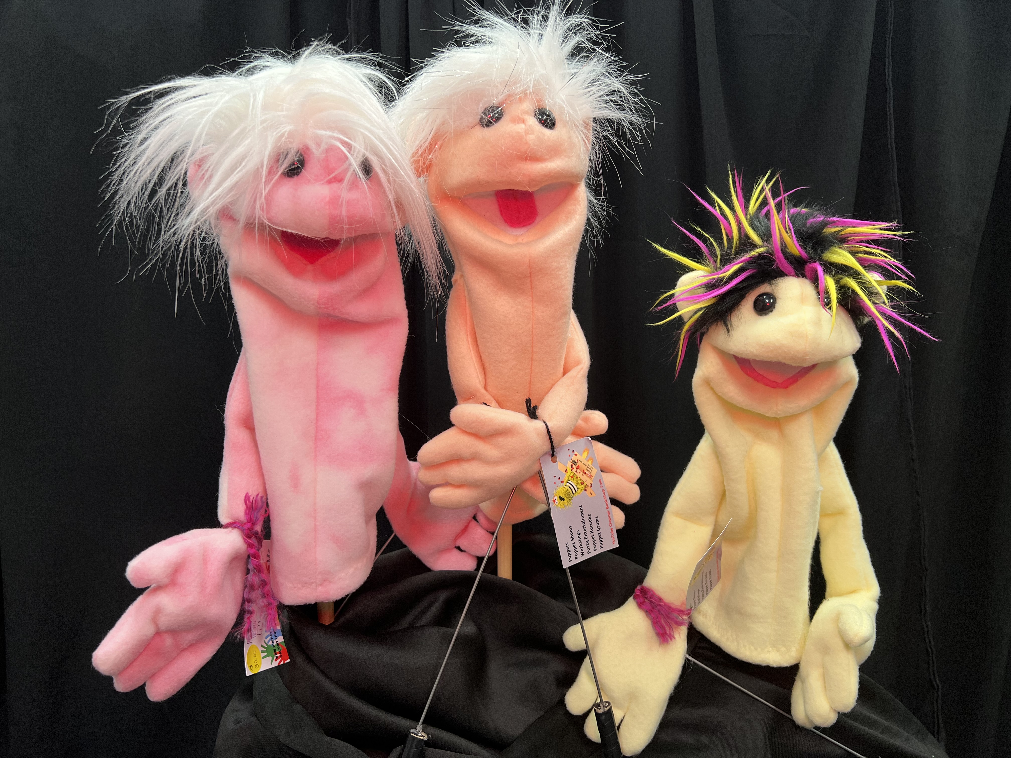 Gray, White, Yellow w/green hair, Green, Pink, Yellow w/white hair